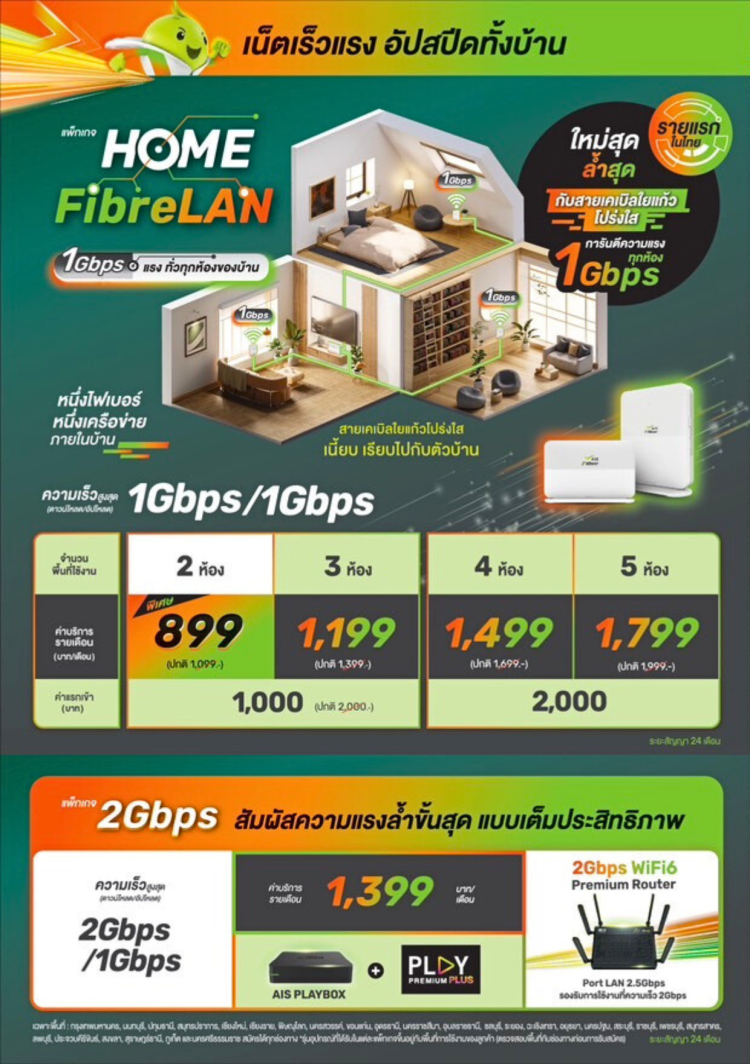 Home Fibre LANราคาเเพ็กเกจเริ่มต้น 899 บาท / เดือนความเร็ว 1Gbps/1Gbps เดินสายภายนอกฟรี!! จากปกติมูลค่า 4,800 บาท