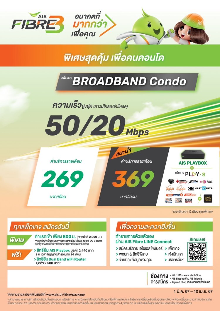 อินเตอร์เน็ตคอนโดราคาเเพ็กเกจเริ่มต้น 269 บาท / เดือน ติดตั้งฟรี!! ไม่มีค่าใช้จ่าย เดินสายภายนอกฟรี!! จากปกติมูลค่า 4,800 บาท